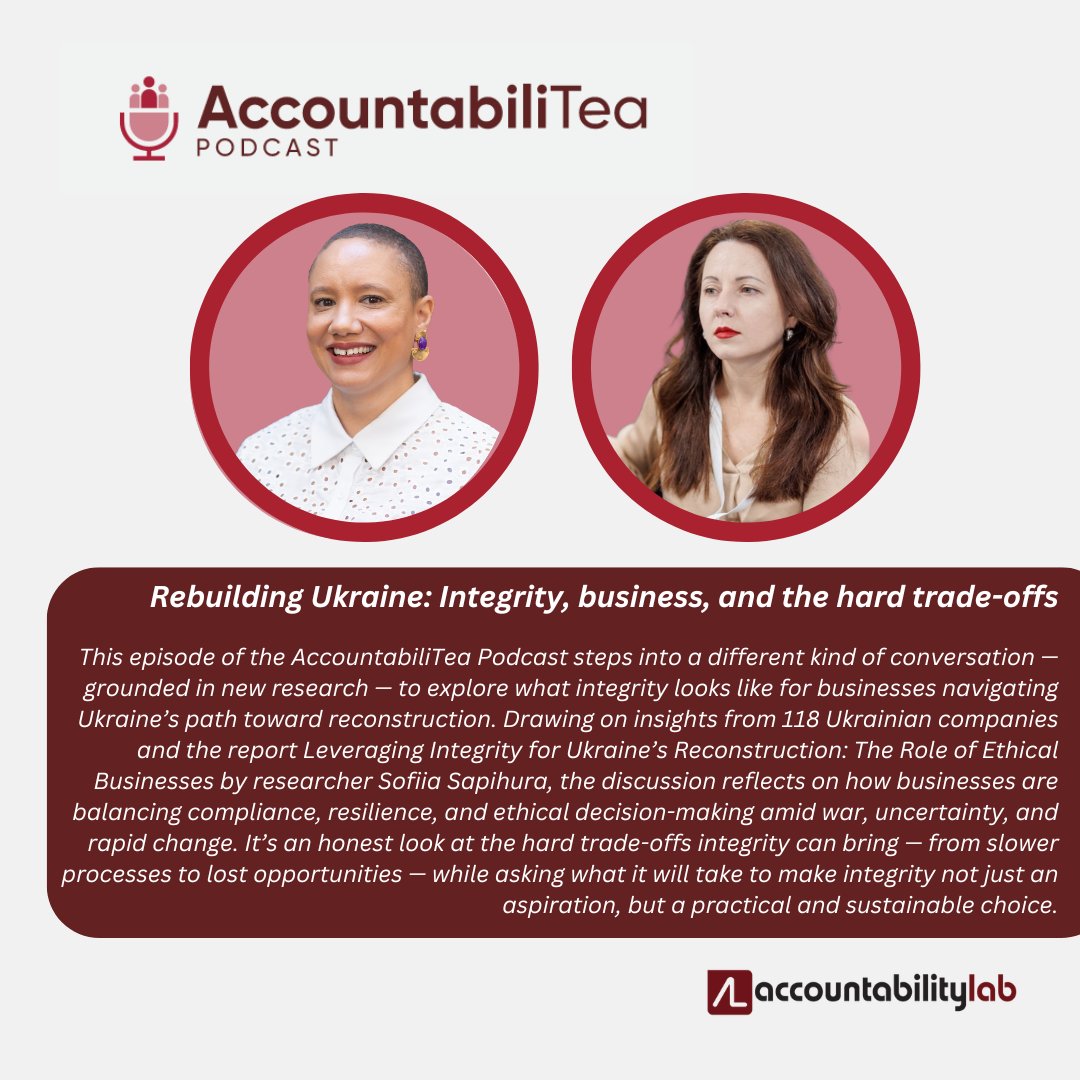 In this #AccountabiliTeaPodcast episode, @SapihuraSofiia joins Cheri-Leigh Erasmus (@AccountLab) to explore how integrity can move from aspiration to practice in Ukraine’s reconstruction.