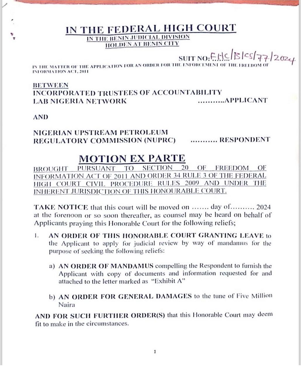 Section 240 of the PIA also says that oil companies have to remit 3% of their actual OpEx to the HCDTF to support the improvement of infrastructure, education, healthcare, and the overall health of these oil-producing communities’ environments. However, important questions from people in the Niger Delta about how clear the 3% OpEx remittances are left unanswered because the Nigerian Upstream Petroleum Regulatory Commission’s (NUPRC) Host Comply portal is still unresponsive in terms of getting important data. In response, we sent on different occasions 3 Freedom of Information (FOI) request letters to the NUPRC seeking the disclosure of information to address the community’s concerns. However, NUPRC declined, citing the information as “too financial and commercial” in nature. Due to NUPRC’s refusal to disclose details on the 3% OPEX remitted by oil companies to the HCDTF under PIA, we pursued legal action in collaboration with FOI Counsel. The Federal High Court in Benin City, after hearing our application, granted us permission to seek judicial review against NUPRC’s non-disclosure.