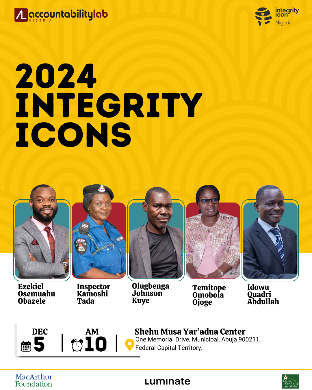 At the 8th edition of the Integrity Icon Summit and Awards in 2024, after carefully reviewing 2,549 nominations for the Integrity Icon Nigeria campaign, we celebrated and honored the top five Integrity Icons- public servants who have exemplified integrity and ethical and responsible leadership across education, procurement, health, and security sectors. The campaign, which reached 1,751,160 people through a combination of social and traditional media, strengthened positive discussions about government officials and promoted trust within our government institutions.