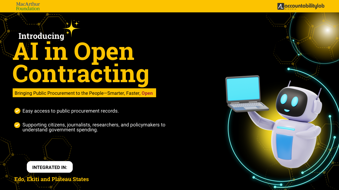 We also launched an AI-integrated tool in the three states, Edo, Ekiti, and Plateau, to make public procurement information more accessible. We designed the tool to automatically extract information from scanned procurement data uploaded to the platform, transforming it into structured data with minimal effort. The platform features an interactive chat function, allowing users to ask questions about public contracts as they relate to the states. They can also access over 2500 public procurement data across the three states in real-time. This tool gives the government and policymakers an advantage in improving their efficiency and decision-making expense analysis, lowering the cost of governance in public procurement processes, and making administration easier.