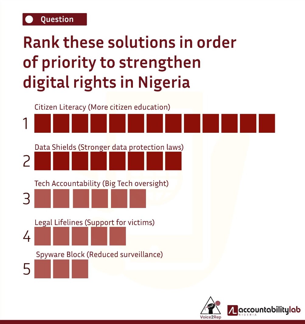 Building on this momentum, we launched the six-month “Accountabilitea” radio program on digital rights across Abuja, Benue, Kaduna, Kano, Nasarawa, and Plateau, reaching an estimated 14.8 million people. The programme engaged 622 live callers, and addressed data protection, privacy, online safety, surveillance, and tech accountability. Listeners reported tangible behavioural changes, including questioning hospital data practices, avoiding unsecured Wi-Fi, strengthening passwords, and using two-factor authentication. Citizens also called for stronger enforcement, better reporting channels like RIPOTI, a central platform for documenting, responding to, and addressing incidents of digital rights violations. They also called for wider public digital rights education. The program’s success highlights both the urgent need for digital governance reform and the public’s appetite for accessible, rights-based information, demonstrating clear impact in raising awareness and driving safer online practices.