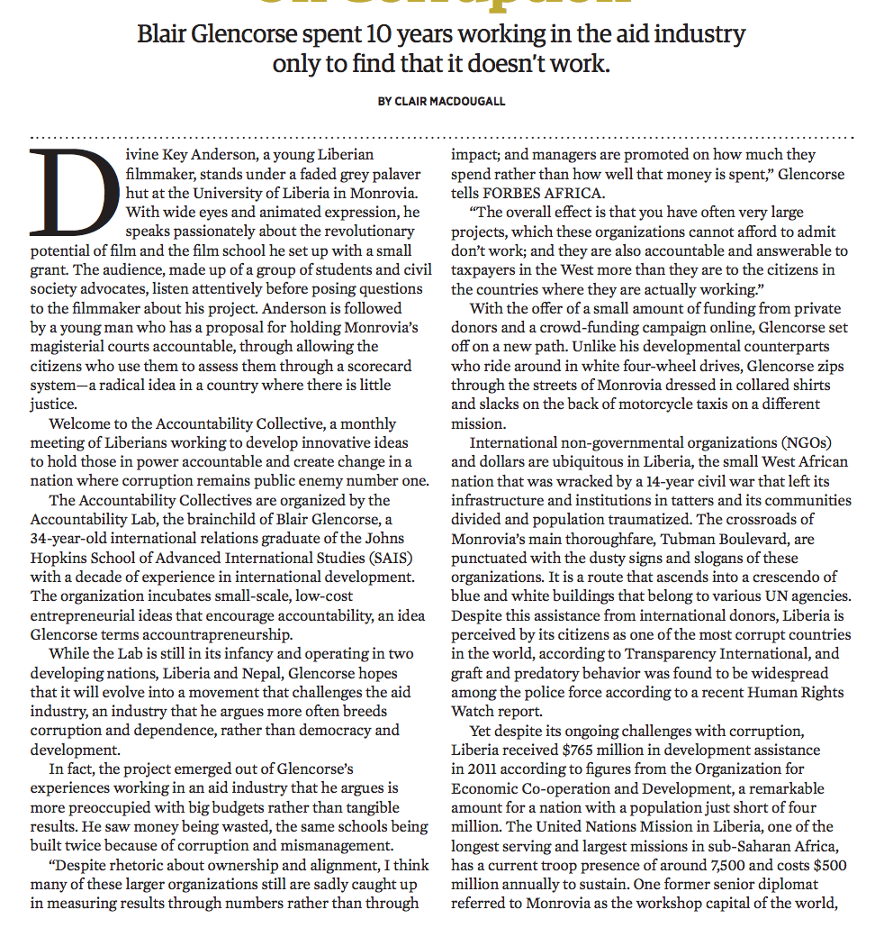 This blog post was originally published by Paper Napkin Wisdom. Power is an interesting concept. Few other nouns evoke such a visceral response quite like the five letter word. Today’s Paper Napkin Wisdom guest has a unique take on power and has used this philosophy to guide his organization, Accountability Lab. “The best thing you can do with power is give it away,” says Blair Glencorse. While many people seek to “change the world” by gaining power through political or economic means, Blair notes that the people who actually inspire change are those who give their power away. “I believe we [...]